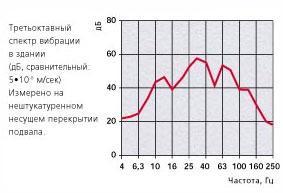 В случаях, когда здания располагаются в непосредственной близости от рельсовой дороги, вибрации в них могут превышать предельно-допустимые значения, установленные Санитарными нормами, в 10 раз (на 20 дБ)! В спектральном составе вибрации преобладают октавные полосы со среднегеометрическими частотами 31,5 и 63 Гц.
