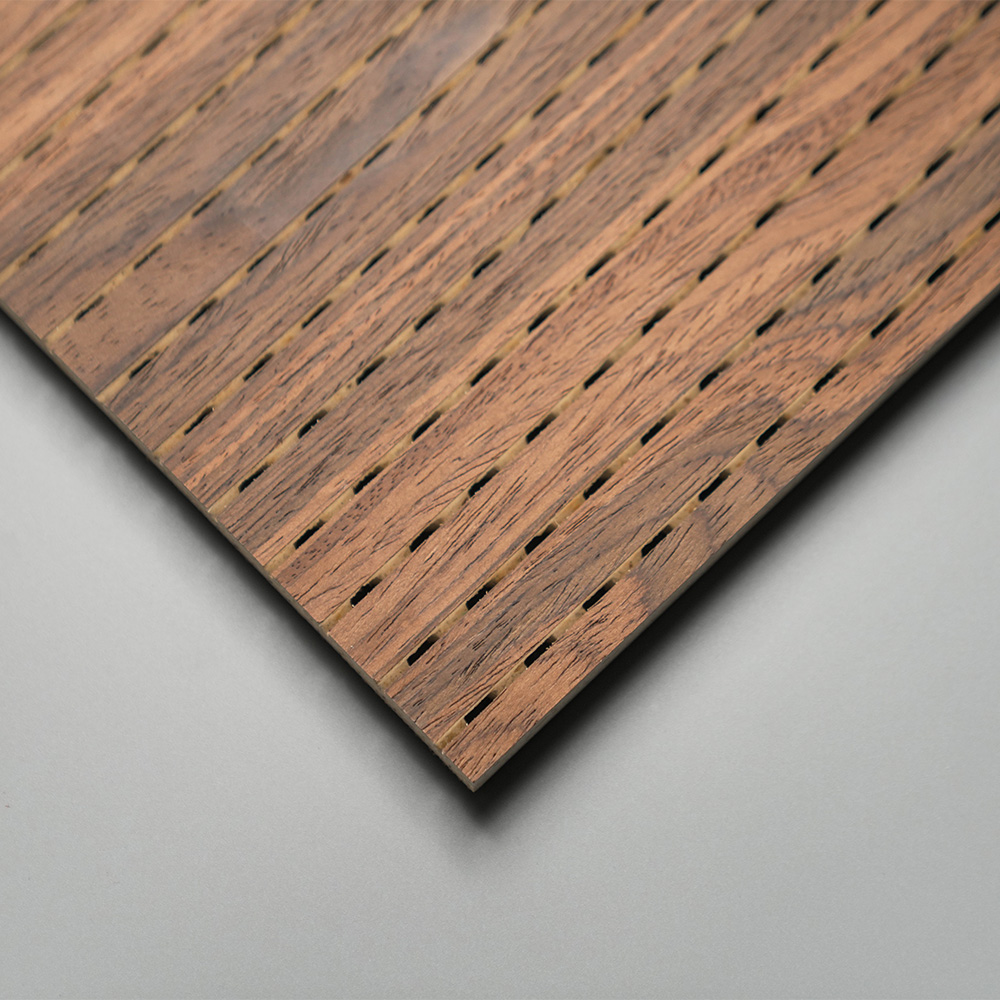 Трудногорючие декоративно-акустические панели с покрытием из шпона файнлайн.