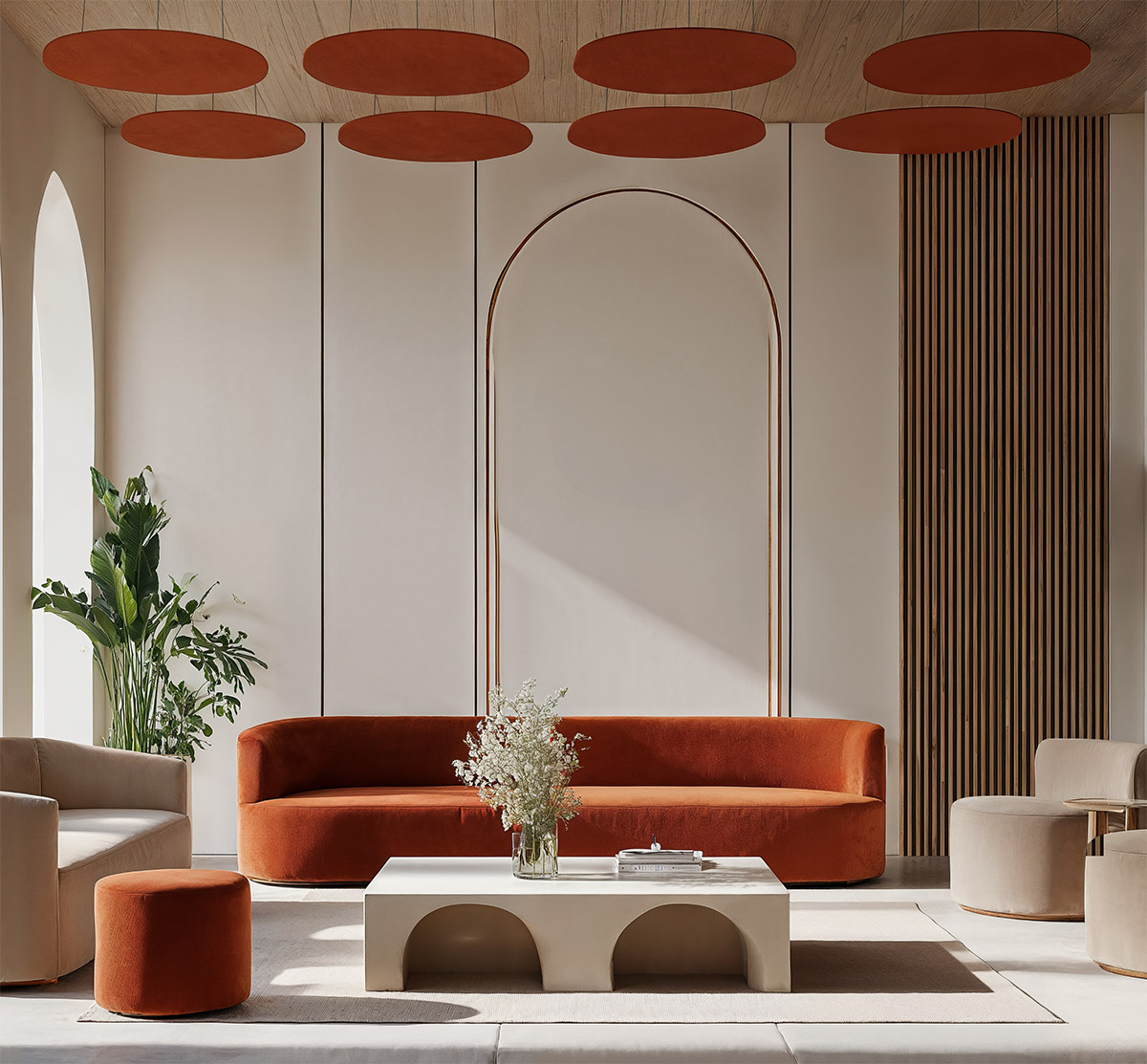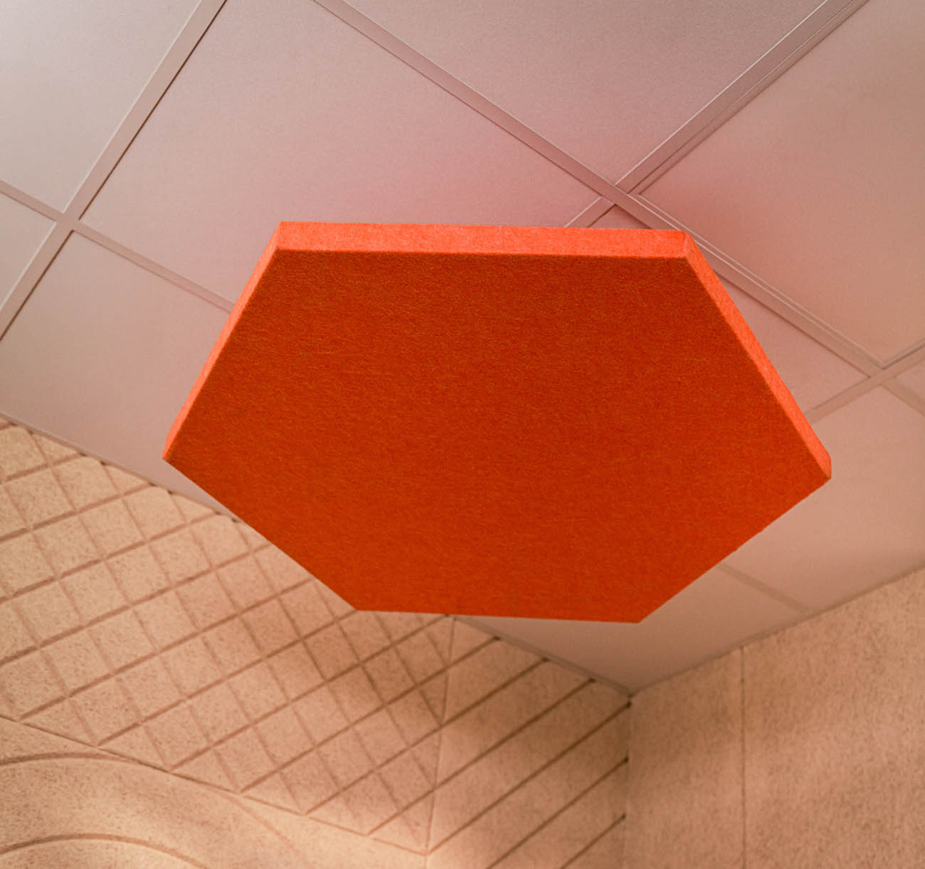 Акустические острова из искусственного войлока для улучшения акустики и добавления ярких акцентов в различные пространства