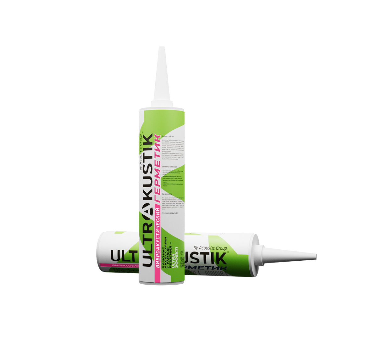 Герметик Ультракустик – виброакустический модифицированный силиконовый герметик. Применяется для герметизации швов и стыков. Обеспечивает защиту от распространения структурных вибраций по компонентам звукоизолирующих конструкций. Повышает собственные звукоизолирующие свойства конструкции.