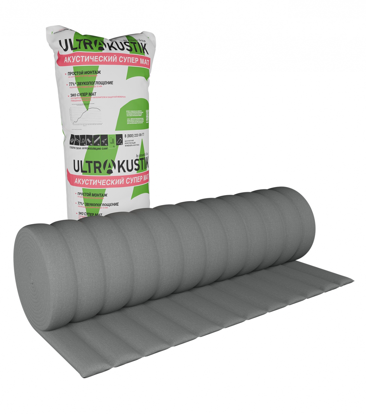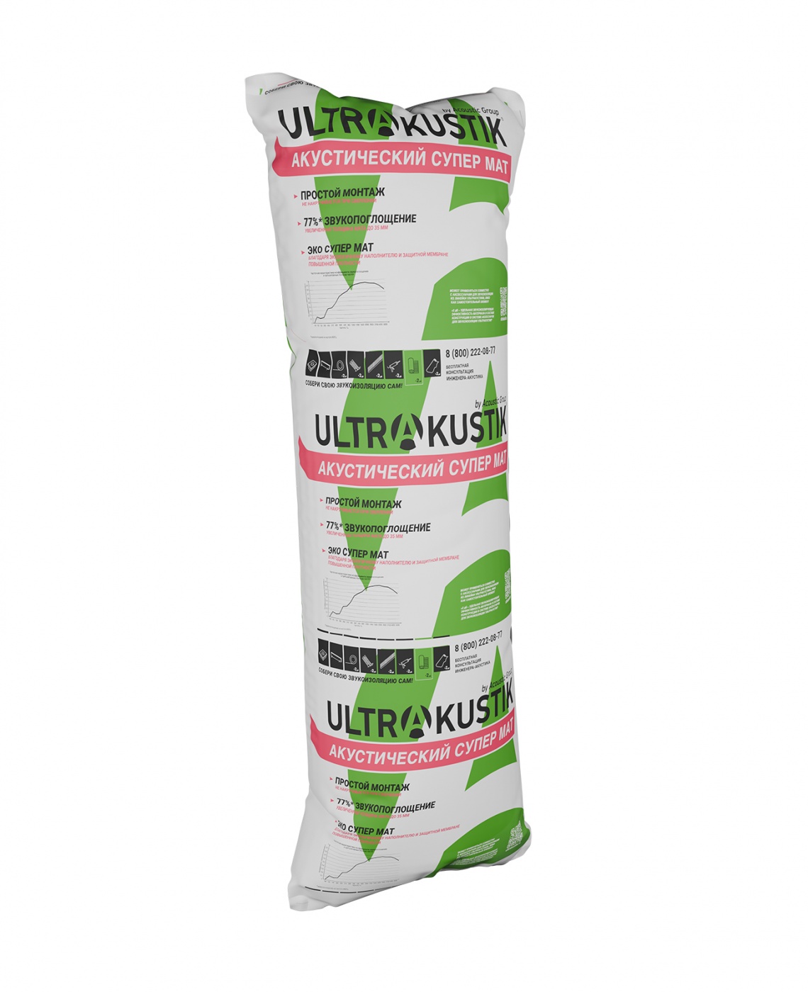 Ультракустик Супер Мат состоит из эффективного звукопоглощающего слоя на основе минеральной ваты. Слой полностью заключён в защитную оболочку из нетканого полотна, которая минимизирует выделение минеральных волокон в воздух, гарантируя безопасность применения.