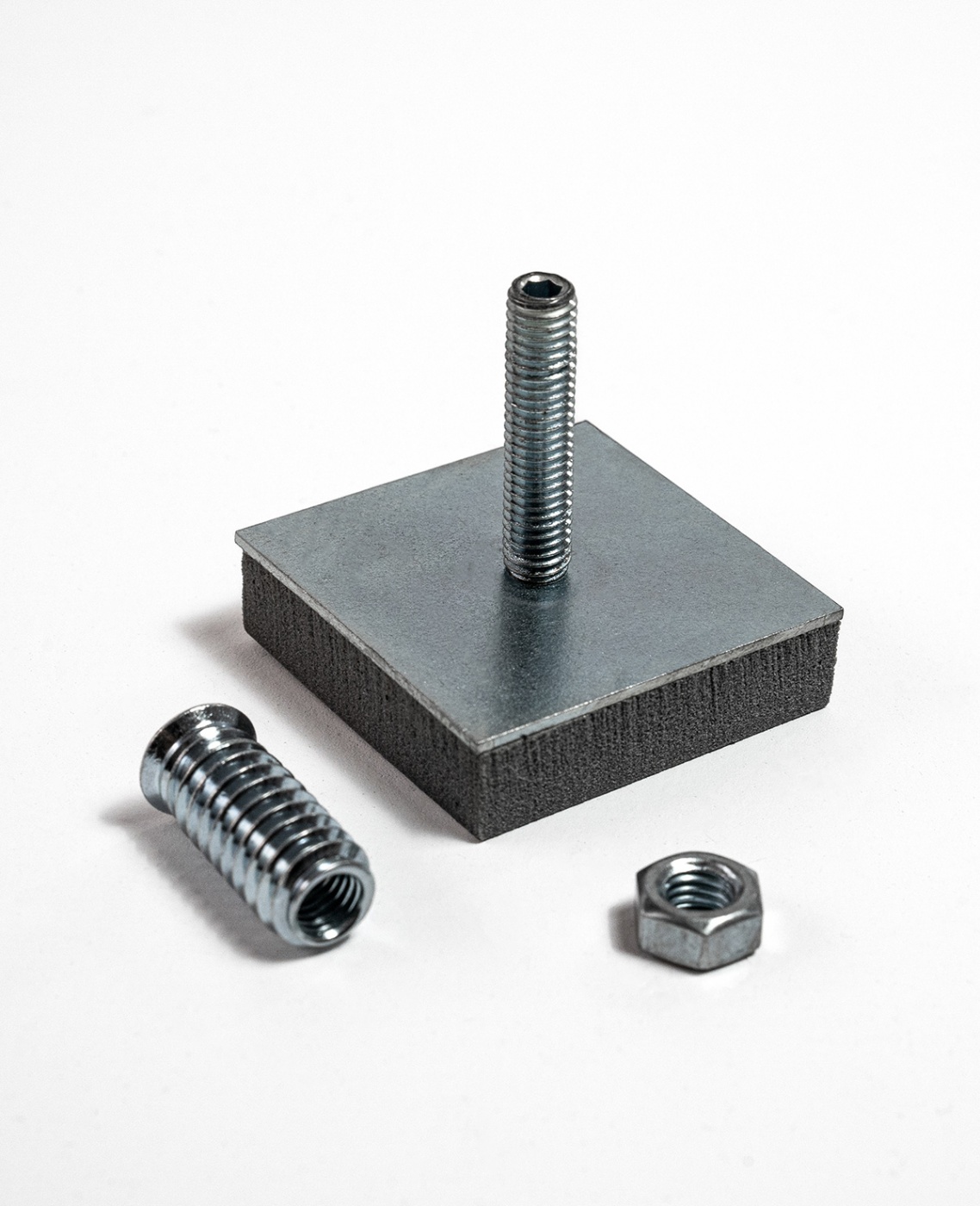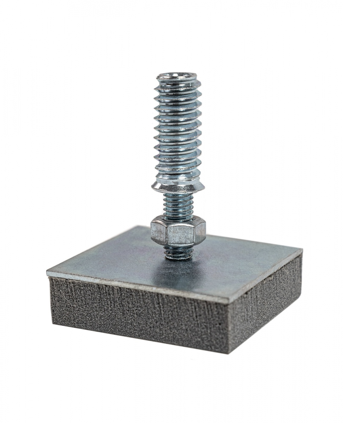 Опора Виброфлекс LD представляет собой распределительную пластину со шпилькой, фитингом, контргайкой, и упругим элементом из высокоэффективного виброизоляционного материала Sylomer производства компании Getzner Werkstoffe GmbH.