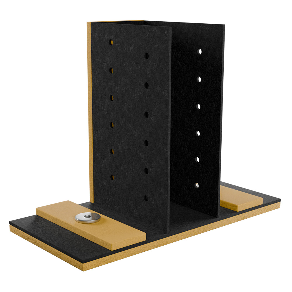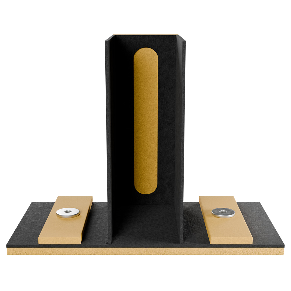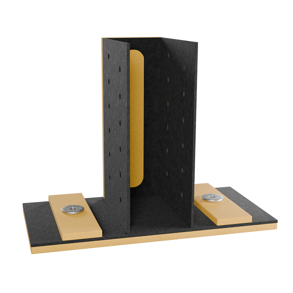 Опора применяется для виброизоляции балок перекрытия, которые устанавливаются на вторую верхнюю обвязку и закрепляются в соответствии с расположением балок перекрытия. В обойму опоры Виброфлекс U-лайн устанавливаются несущие опорные балки перекрытия и фиксируются в них.