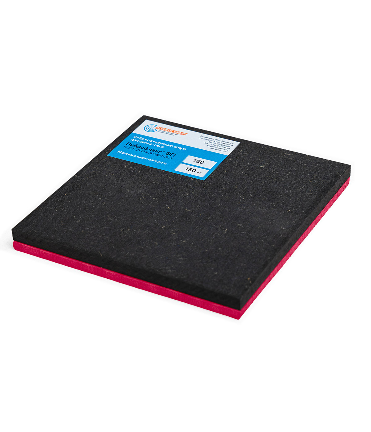 Опора ВИБРОФЛЕКС ФП-160 представляет собой упругий элемент из высокоэффективного виброизоляционного материала Sylodyn® производства компании Getzner Werkstoffe GmbH с распределительной пластиной для равномерного распределения нагрузки.